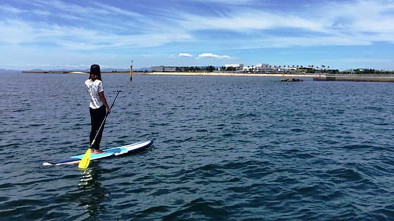 站立於专门的冲浪板上,使用一根划桨在海面上前进,是现今受注目的水上活动。