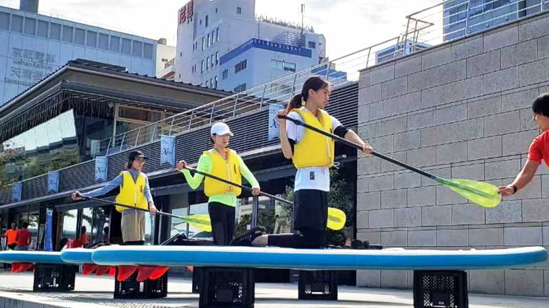 早晨就举行,让时间更有效的运用。技术纯熟的话,自己也可以租借SUP,这样的活动成为早上上班前的早晨运动而广受好评。