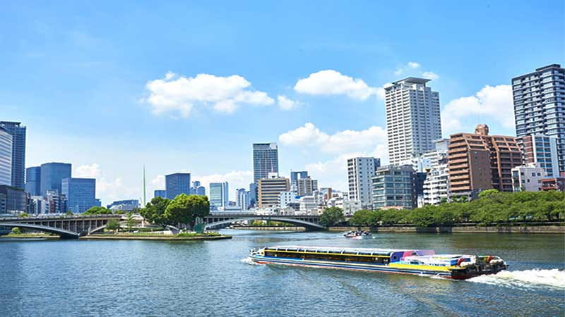 大阪水上巴士Aqua Liner是一艘观光船,游客可以从水上探索大阪市的大川。大川沿岸的历史建筑点缀其间,只需乘坐小船,同时在语音导游的引导下,就能轻松了解观光的内容。河道周围还种植了一些树木,让游客感受到四季的变化。