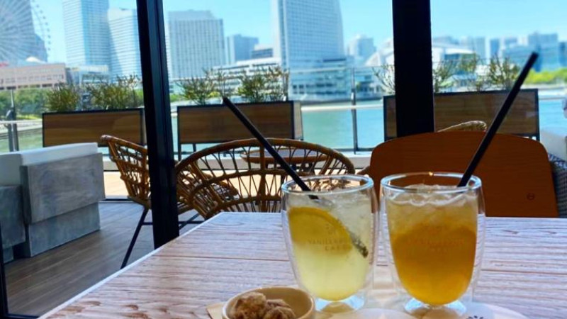 这里是享用丰盛午餐的最佳地点,可以欣赏到横滨的海景。
