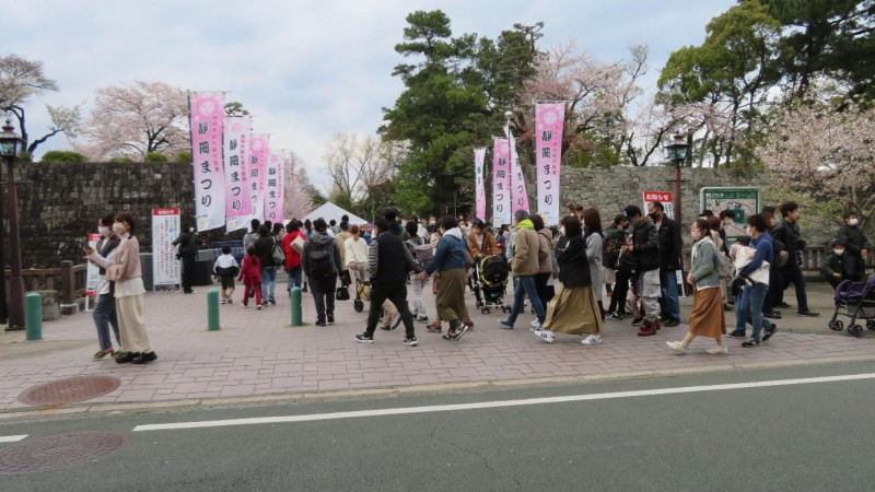 静冈节在静冈市的赏樱季节举行,据说是因为德川家康带着他的臣子们去孙普城赏花而产生的。在几天的时间里,白天和晚上都会组织各种各样的活动。其中最大的活动是 "大皇宫花见游行"(Grand Imperial Palace Hanami Gyoretsu)。德川家康,大御所,在织田所和其他封建领主的陪同下,参加约400人的花见游行,从Sunpu城到静冈浅间神社巡游。