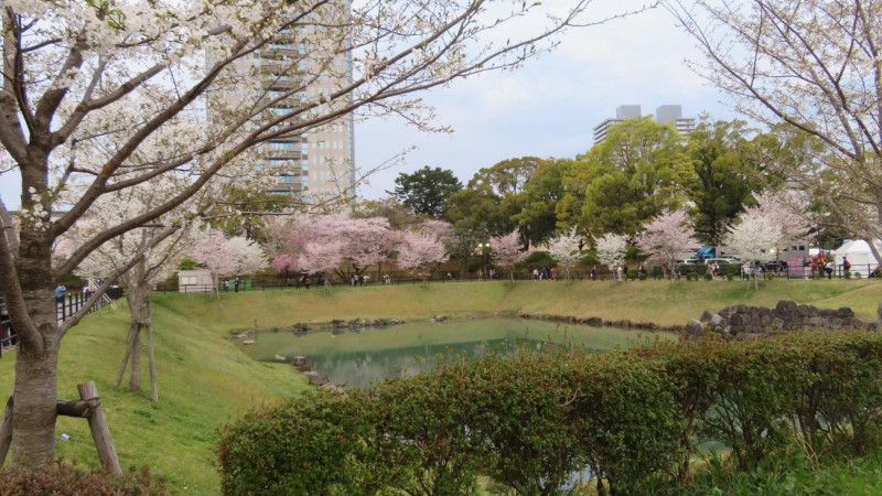 在18公顷的公园里,可以看到数量最多的樱花树是在辰巳橹周围、本丸护城河和东御门前的广场,在东南方向。这些樱花树,主要是染井吉野,也有垂枝樱、大岛樱、Zindaiakebono和其他品种,都以自己独特的方式绽放。