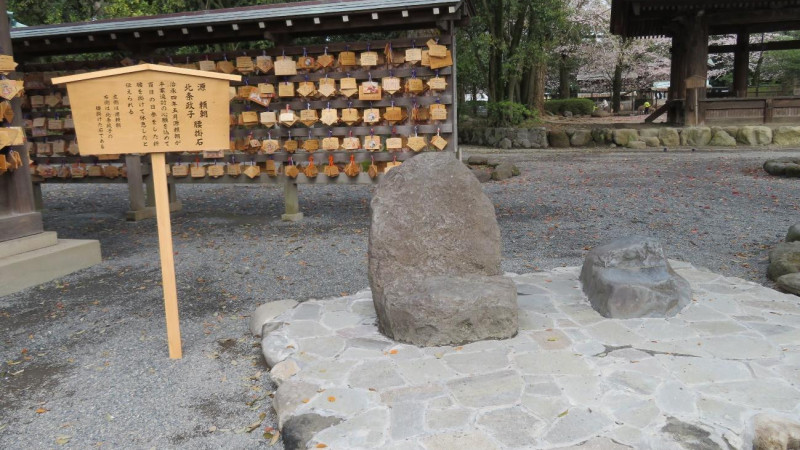 许多情侣在早春时节去三岛大社观赏樱花。在平安时代(794-1185年),据说改变了日本历史进程的重要人物曾多次在神社约会,它甚至在电视画面中作为2022年NHK历史剧《镰仓堂13人》的场景出现。据说,源赖朝和北条政子在进行百日朝圣以祈求打败平家时,曾在这块越石上休息过,现在这块越石仍在神社的院内。珍藏室展出了据推测是由正子献上的 "梅花漆手盒"(用梅花漆装饰的盒子),以及赖朝等人的旧文件。