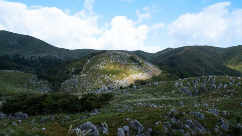 位于福冈县北九州市的平大,可以看到喀斯特高原的壮丽景色。骑马穿过广阔的绿色土地是令人振奋的,其面积是东京穹顶的五倍,点缀着白色的石灰岩结构。从凉亭里你可以看到平顶山360°的全景。如果你在中午前后到达观景台,你将能够看到太阳的光芒在石灰岩上反射,形成一个闪闪发光的壮观景色。
