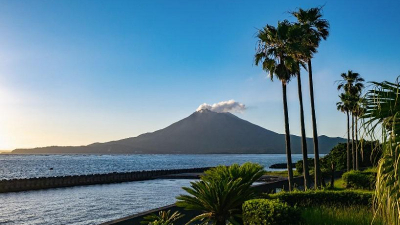 鹿儿岛县的路边车站Tarumizu位于樱岛附近。在大隅半岛观光之后,这个路边站是前往鹿儿岛市的必经之路。樱岛漂浮在锦江湾的壮观景象令人印象深刻,但道之驿塔鲁米水的亮点是足浴。游客可以免费享受足浴,同时注视着眼前隐约可见的樱岛。