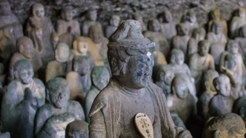 「位于岛根县的罗汉寺」被指定为世界遗产「岩见银山」的一部分。该寺创建于 1868 年,最初位于岩见银山银矿内。主神阿弥陀如来保护着银矿工人的安全。寺院内有 500 位阿罗汉,石窟中还有许多佛像。这些石窟是为那些在银矿中死去的人修建的,给这里增添了庄严肃穆的气氛。