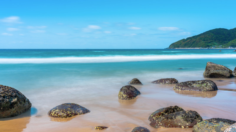 「福冈县的箱岛神社」位于海中的一个小岛上,在江户时代被称为龙宫。它被当地人奉为爱神和耳神。神社坐落在一个小岛上,神社后面是一望无际的蔚蓝大海。如果能看到这样的景色,那就更值得一游了。