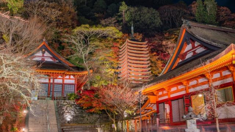 当然,您应该在秋高气爽的白天前往参观,但尤其应该在寺庙灯火通明的时候前往参观。各种重要的文化遗产和 3000 棵红叶在灯光的映照下美轮美奂,营造出一个不同于白天的神奇世界。
