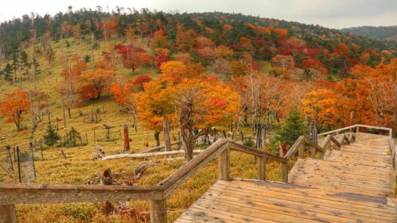 这里共有四条徒步旅行路线,但对于想要欣赏秋色的游客来说,推荐您选择适合初学者的东大台路线。这里有许多壮观的观景点,如险峻的悬崖『Daijagura』和美丽的溪谷『Shiokara 山谷吊桥』,您可以一边徒步旅行,一边悠闲地欣赏红叶。