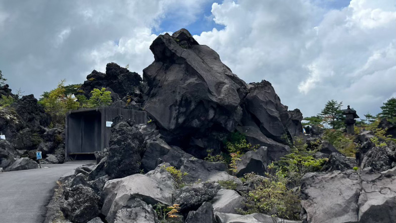 1868 年浅间山喷发时流出的熔岩冷却凝固后形成的熔岩艺术。「Onishidashi Garden」。