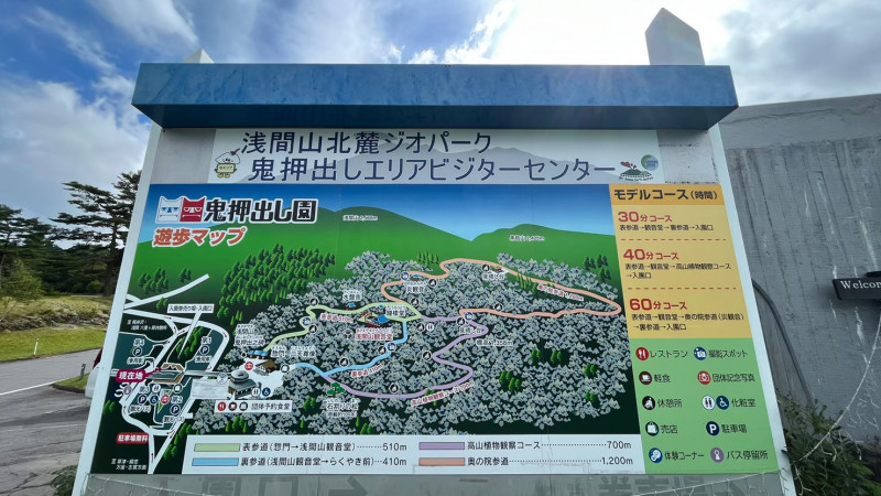 在公园入口和停车场之间有一个免费休息区,其中包括浅间山北麓地质公园。