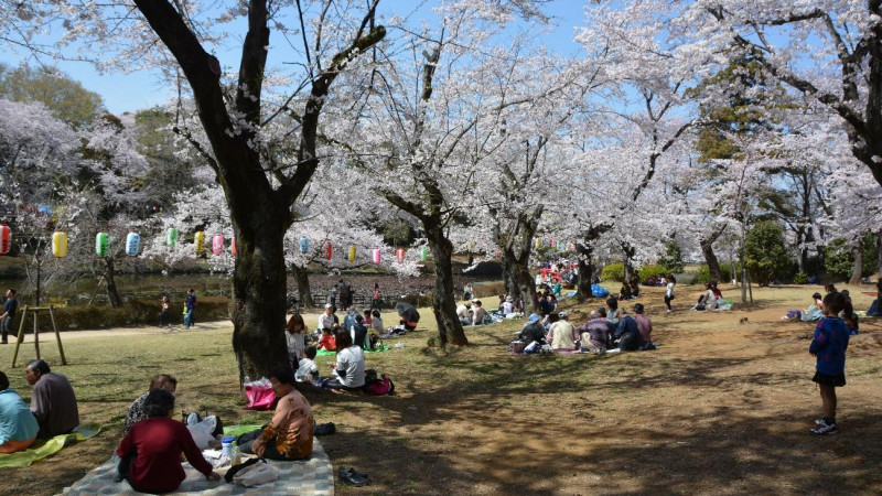 与野公园占地 51,000 平方米,种植了各种植物,公园周围有一条便于步行的长廊。游客可以一边欣赏樱花和其他花草树木,一边悠闲地散步。樱花盛开时,公园里会挂起灯笼,营造出浓郁的日式氛围。公园每逢节假日都会吸引大批游客,但平日则不会很拥挤。您可以自带休闲床单,铺在自己喜欢的地方,边赏樱边吃喝玩乐。东入口附近有一些小摊,但数量不多。