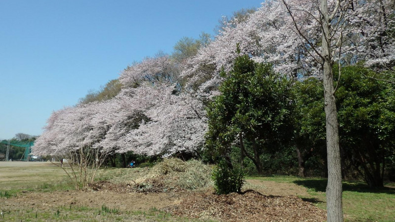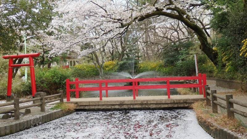 与野公园是在琦玉县中央区的天藏神社、御岳神社和大黑神社的土地上开发的公园。公园内种植了约 60 棵樱花树,其中包括染井吉野樱和八重樱。樱花通常在早春 3 月下旬至 4 月上旬同时绽放,将公园笼罩在淡淡的红色之中。公园中心的弁天池旁建有一座鲜艳的朱红色小桥,旁边还有一个小鸟居。在樱花盛开的季节,池塘水面上的樱花倒影也非常动人,但在樱花盛开的季节过后,樱花花瓣覆盖在水面上的景色则是一种独特的体验。