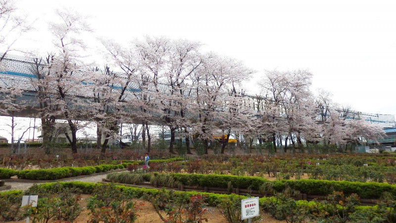 公园西侧以新大宫支路为界,上方是首都高速埼玉大宫线高架。这些樱花树不仅给公园的游客,也给高速公路上的驾驶者带来了季节的气息。公园的玫瑰花备受赞誉。