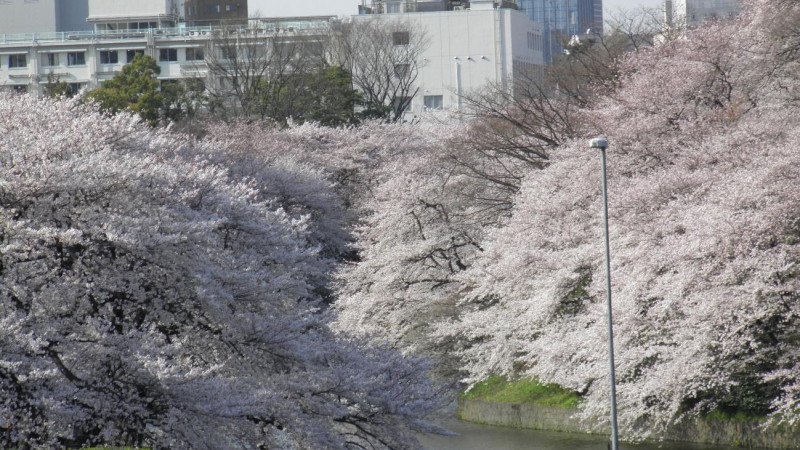 位于首都东京市中心的皇居是江户时代德川幕府将军建立幕府的江户城。作为国家的中心所在地,它必须配备完善的防御设施。护城河由几层护城河环绕着几座建筑。时至今日,在市中心仍然可以看到一条环绕的长护城河,它是江户时代的遗迹。从江户城西端的半藏门到北端的大门之间开挖的内护城河被称为千鸟渊。护城河沿岸种植了樱花树,通常从 3 月下旬到 4 月上旬,护城河会被早春的色彩所笼罩。这里是东京赏樱的最佳地点之一,每年都吸引大批游客前来观赏。