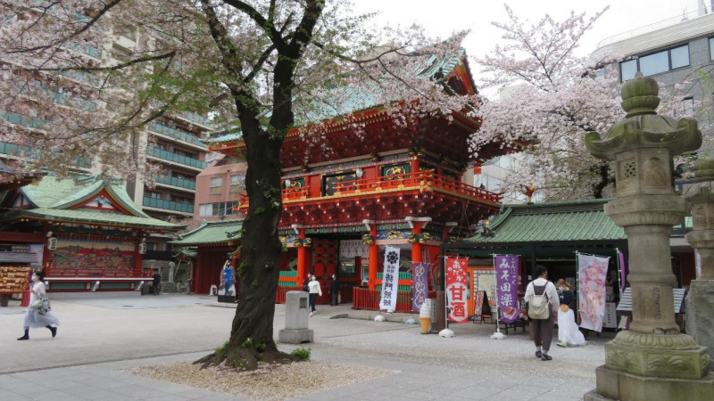 神田明神是位于东京千代田区外神田的一座神社。根据神社的传说,该神社的起源可追溯到奈良时代(730-784 年),当时出云后裔牧田富(Makandaomi)将大河内御神(Ohonamuchi no Mikoto)奉为祖先神。战国时期,该神社受到太田独孤及北条宇治纲等著名军阀的慷慨保护。到了江户时代(1603-1867 年),该神社成为德川幕府修建的江户城正门的守护神。此后,「,它作为江户」的总守护神,不仅受到幕府将军的崇拜,也受到江户一般民众的崇拜。每隔一年五月中旬举行的「神田祭」是「江户三大祭祀活动之一」。由于花车(dashi)要进入江户城接受幕府将军的检阅,因此有时也被称为「Tentakusai」。神社院内种植了许多樱花树,通常在三月底至四月初开花,向游客预示着春天的到来。