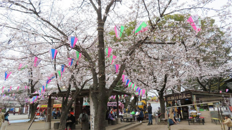 樱花开得最盛的时候,会有很多人来到这里。您还可以看到成群结队的人们铺上休闲床单欣赏樱花。周围还设有小摊,可以在当地购买食品和饮料。