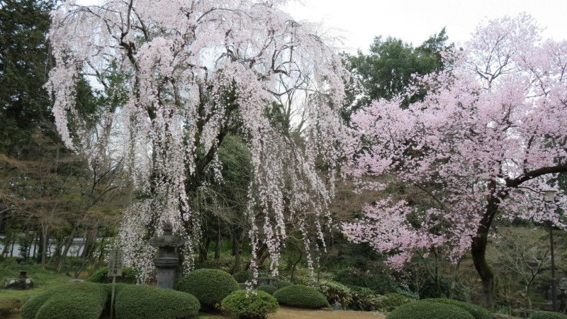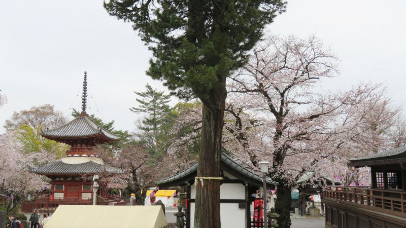 约 100 棵染井吉野樱点缀着川越大石北院的众多殿堂。