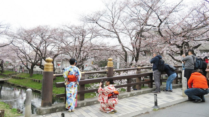 虽然河岸上没有专门的赏樱设施,但每到赏樱季节,河边就会有很多人散步。在人群中经常可以看到身着和服的女性。川越市又名「Koedo」,是琦玉县的最佳旅游胜地之一,由「街景」。市内有许多和服出租店,您可以就地换装。穿着和服以樱花为背景拍照一定会成为珍贵的回忆。有些年份,新开河上还会有赏樱船。如果乘坐屋形船观赏樱花,您将沉浸在日本风情之中。