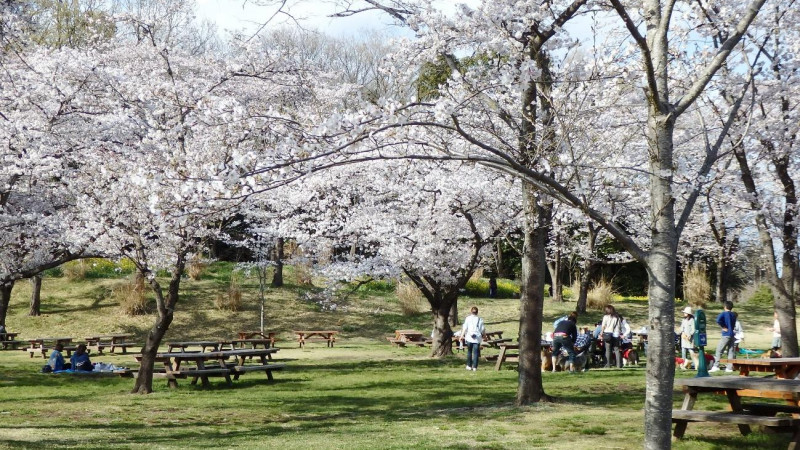 国家武藏山森林公园内种植着各种各样的植物和树木,但樱花树密度最高的地方是公园南入口附近的「花圃」周围。该区域与烧烤区「户外烹饪广场」相邻,游客可以坐在椅子上边吃喝边欣赏樱花。以染井吉野樱为主的约 400 株樱花大约在 4 月初盛开,比市中心晚一周左右。「在花卉园」外的公园里可以看到各种品种的樱花,从三月初开始,锦樱、山樱、霞樱和聪樱在公园的各个地方形成樱花接力赛。