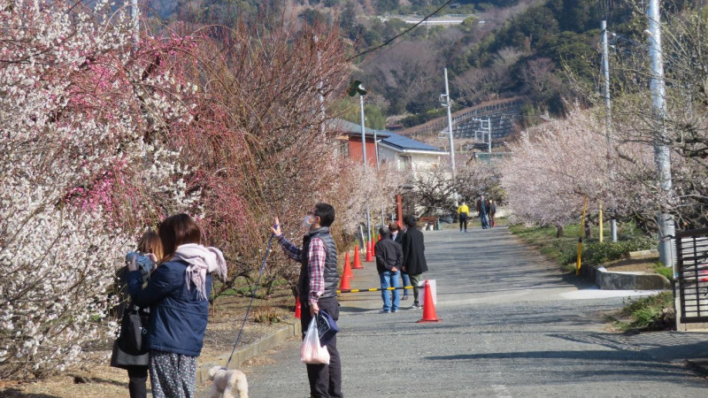 【神奈川】初春时节,小田原市的四个梅花景点被红色和白色的花朵装点一新。