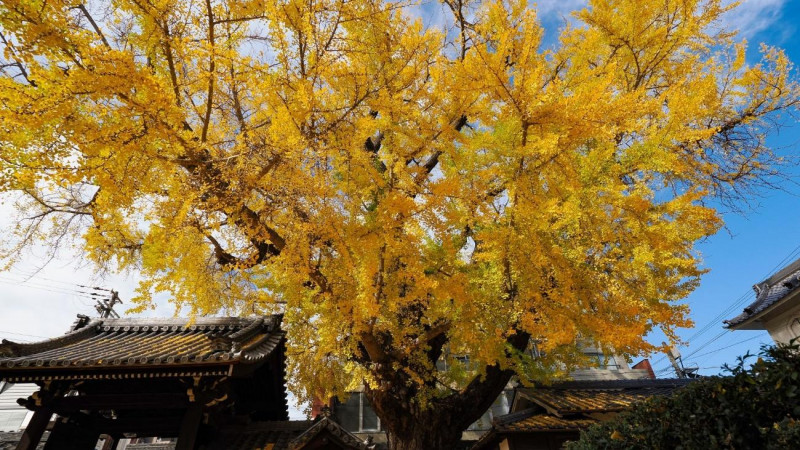 寺院内的一棵大银杏树格外引人注目。据估计,这棵古树高约 25 米,直径约 1.5 米,树枝长达 15 米,树龄约 500 年,被大阪府指定为天然纪念物。