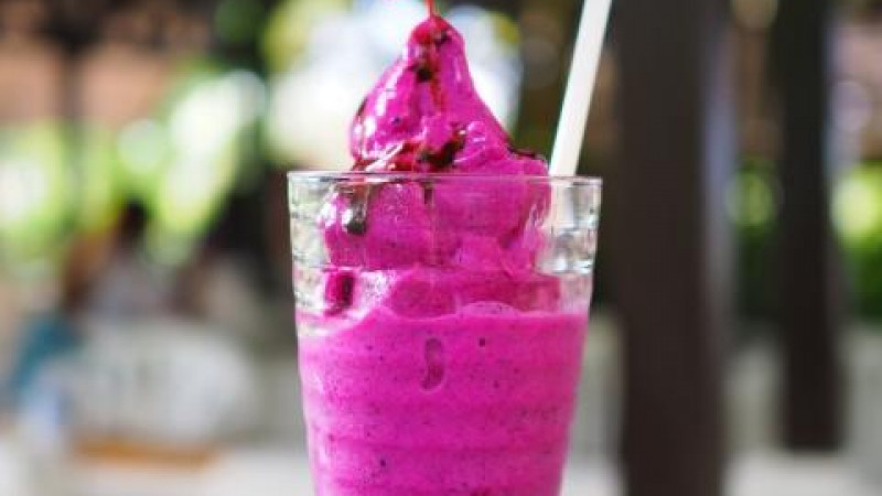 其中最受欢迎的是「火龙香蕉奶昔」,它是由奢华的火龙果制成的。