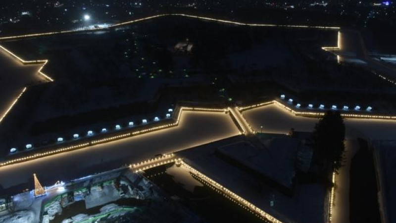 During the event, snow is piled up on the ground, adding to the fantastic atmosphere.