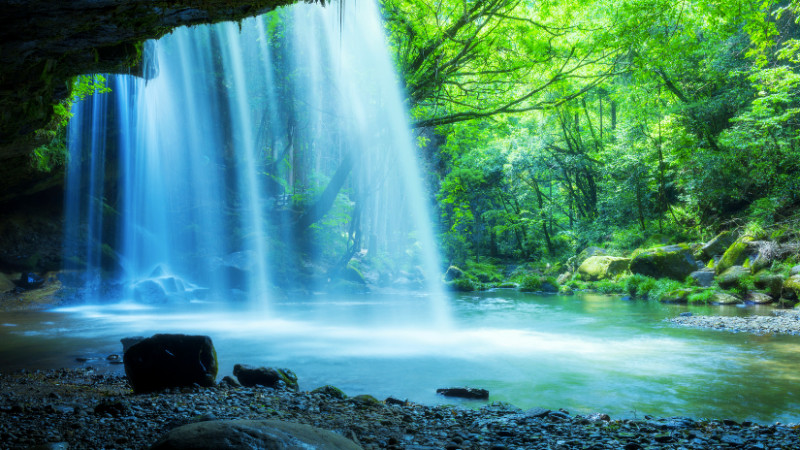 Created by the eruption of Mt. Aso in prehistoric times, "Nabeketaki Waterfall "has eroded over a long period of time to its current shape. It is a power spot where you can feel the history of the earth and be healed by the beauty of nature.