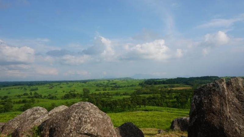 "Oshido-ishi Hill "is a hill with huge stones lying around. From the top of the hill, visitors can enjoy a panoramic view of Aso. "Oshido-ishi Hill "has been found to contain stones inscribed with Sumerian script that were used about 4,000 years ago. Other megalithic stones are also found here, which seem to have been placed there intentionally by human beings. They suggest that the hill has been used as a prayer hill since prehistoric times.