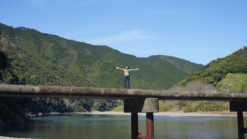 "Iwama sunken bridge "is the most impressive scenery among the many sunken bridges I have seen. Located at the meandering point of the Shimanto River, it offers a close-up view of the mountains and a good old Japanese scene, as if you were transported back in time to the satoyama of a long time ago.
