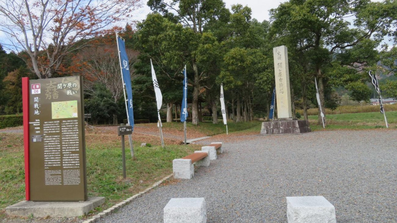 The decisive battle of the Battle of Sekigahara took place in the countryside at the southeastern foot of Mount Sasao, where Mitsunari Ishida had his main camp, and northwest of the site of Ieyasu Tokugawa's last camp. In the morning of the day, the battle progressed in favor of the western forces, but the situation changed drastically when Kobayakawa Hideaki switched sides to the eastern forces. The eastern army quickly gained the upper hand, and the western army was defeated after several hours of hard fighting. At the site of the fierce battle, a large stone monument, a flag with the crests of the Tokugawa and Ishida families, and a rest area have been erected. The plain, which now has a peaceful atmosphere, became the site of a defining moment in Japanese history.