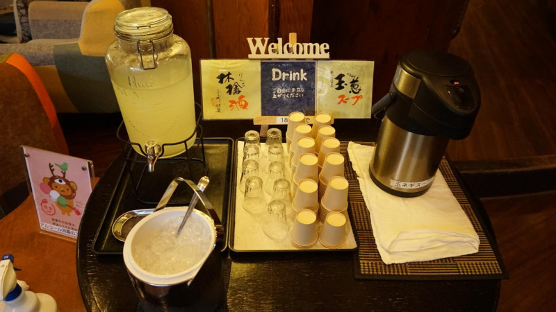 After check-in, you can enjoy hand-picked mugwort tea, apple wine, and Japanese sweets at the lounge right next to the check-in counter. In the evening, you can also enjoy amazake (sweet sake) from Hokkaido's proud sake brewery "Kunimare Shuzo ".