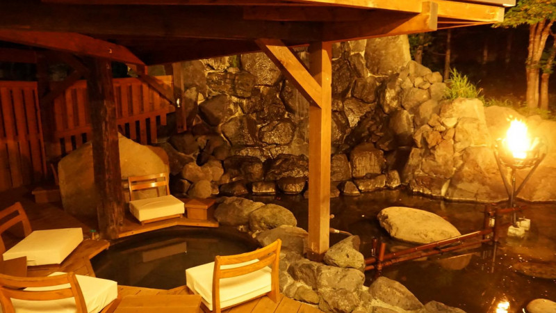 "Nonokaze Resort "features "a bath with a spectacular view of Lake Toya ". "The rooftop open-air bath titled Tenku-no-Otenburo "is an infinity open-air bath that seems to connect the open-air bath to Lake Toya. The magnificent view of Lake Toya spreading out before your eyes, Nakajima floating on the lake, and Mt. In particular, the time spent soaking in "the open-air bath in the sky "while watching the fireworks of the "Lake Toya Long-Run Fireworks Festival "held every night from the end of April to the end of October will be an unforgettable memory.