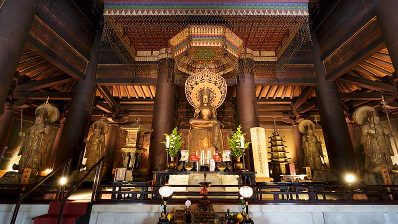大師堂では、空海を祀っており大阪天王寺で四国88カ所参りができるようになっています。また、布袋堂では子孫繁栄や商売繁盛にご利益があると言われており、大阪名物なでほてい尊もおり黄金袋を撫でれば財運が付くと言われています。大黒堂では多くの願い事にご利益のある三面大黒天をお祀りしています。万燈院では無病息災や病気平癒の神様がおり、木槌で自分の悪い所を叩くと病が治るとされています。亀遊嶋辯天堂では智恵弁才、福徳円満、子孫繁栄のご利益があり、番匠堂では技術向上と安全を、亀井不動尊では厄除開運や大願成就にご利益があると言われています。牛王尊は病気平癒、庚申堂では厄除開運や病気平癒に効果があるとされています。まさに四天王なのですが、四天王寺の敷地は全敷地面積33,000坪あるので効率よく回らなければ1日では観光しきれなくなっていますので注意してください。大阪名物七福神の旅を是非堪能してみてください。