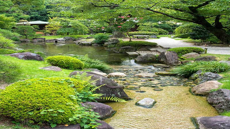極楽浄土の庭は、中国の二河白道(極楽往生)を元にして作られており、簡単に言えば怒りと業を表せており、その間の白道をぬうように歩いて行けば極楽浄土を目指すことができるという意味になっています。