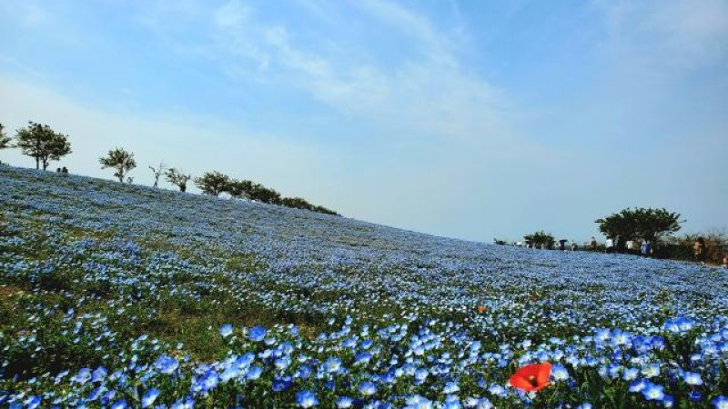 こちらでは毎年春にネモフィラ祭りが開催され、約3万平方メートルの敷地内に100万株のネモフィラが咲き乱れます。