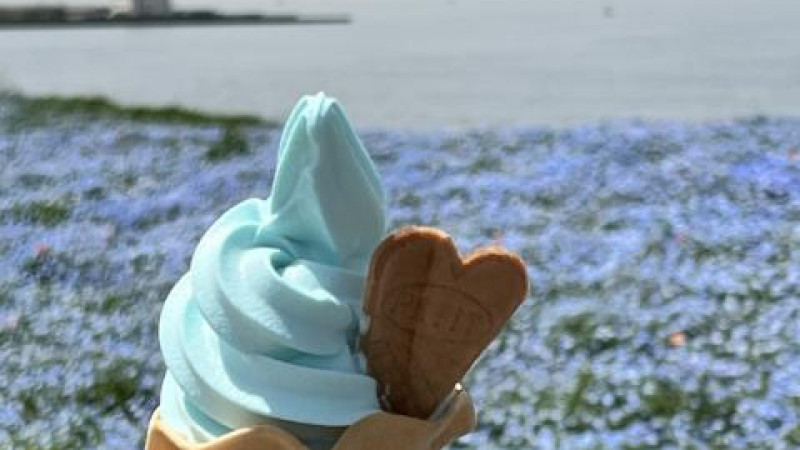 大阪まいしまシーサイドパークのネモフィラ祭りといえば、ネモフィラブルーが鮮やかなソフトクリーム『ブルーアイ』や、フルーツたっぷりの『ブルーパフェ』など、この時期、ここでしか食べられない限定フードも外せません。