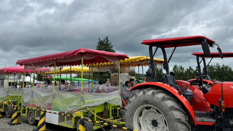 園内には、ラベンダーカラーのトラクターが座席を引きながらラベンダーイーストの園内を走る"ラベンダーバス"もあり、前に広がる大パノラマを爽やかな香りと心地良い風と共にゆったりと楽しむことができます。