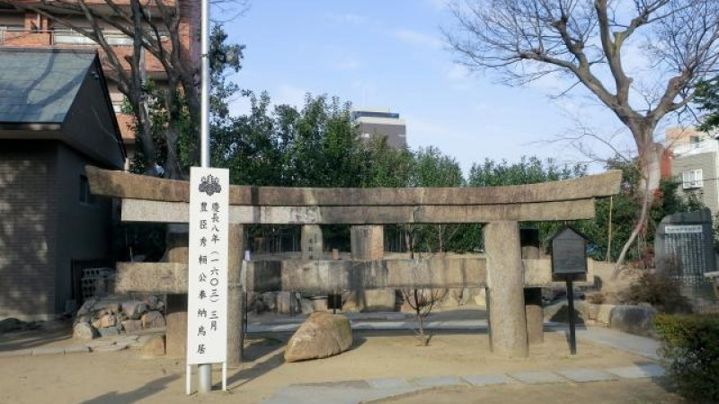 もともとは明治天皇の勅令により、京都の豊國神社の別社として中之島字山崎の鼻(現在の中央公会堂の地点)に創建されましたが、ご祭神に最も縁が深いという理由から、1961年に現在の場所へ移されました。