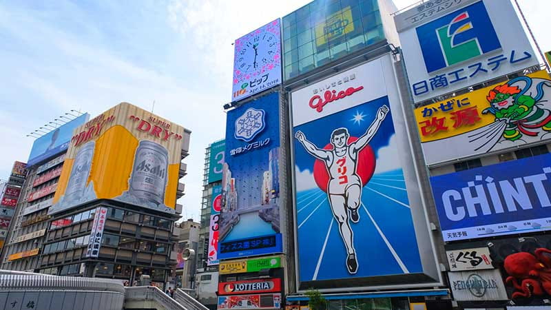 도톤보리 리버 크루즈를 흐르는 도톤보리 강 주변에는 많은 관광 명소가 있다.