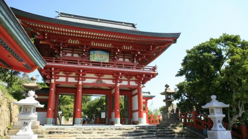 "칭다오 신사 "도 고사기와 관련이 있는 신사로, 우미유키히코-야마사치히코 신화의 무대로 알려져 있다. 낚싯바늘을 찾으러 바다로 간 "야마사치히코(山幸彦) "가 바다의 신의 딸인 "토요타마히메노미코토(豊玉姫命) "와 함께 육지로 돌아와 살게 된 곳이 바로 이 "아오시마 신사 "라고 전해지고 있습니다. 경내에 있는 "가이샤쿠 신사 "에 산유키히코(山幸彦)인 "소히코나미노미코토(少彦名命) "과 "토요타마히메노미코토(豊玉姫命) "부부의 신이 모셔져 있다. 부부의 신이 모셔져 있기 때문에 인연 맺음에 효험이 있다고 합니다.