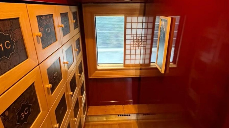 3번 차량은 바닥이 다다미로 되어 있기 때문에 발바닥을 밟는 것은 엄격히 금지되어 있다. 자신의 지정좌석 번호가 적힌 공간에 신발을 보관하는 구조로 되어 있다.