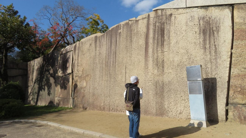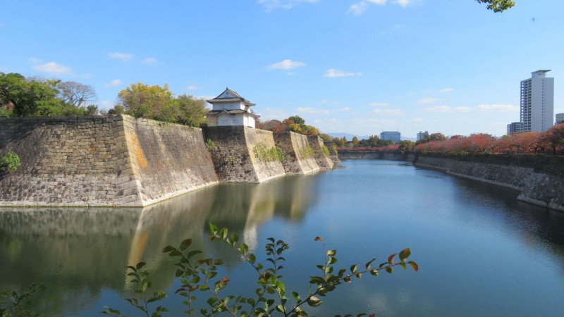 전국 각지의 영주들이 가져온 돌은 천수각과 망루의 기초, 성의 외곽 등의 돌담으로 쌓아올렸다. 에도 시대 초기의 재건 시기는 일본 성 축성 기술의 성숙기에 해당한다. 돌과 돌이 빈틈없이 결합되어 토목 기술의 완성도가 높다는 것을 증명하는 것 같다. 그 규모와 정교하고 정돈된 아름다움은 여러 다이묘들이 각 번(藩)의 명성을 걸고 축조한 결과입니다. 끝없이 이어지는 돌담에서 옛 오사카성의 규모를 느낄 수 있다. 돌담 아래쪽에는 잔잔한 물이 흐르는 해자가 이어져 있다. 성의 방어에 필수적인 시설이지만, 현재는 경관을 더욱 풍성하게 만들어주는 역할을 하고 있는 것 같다.