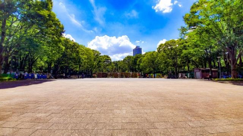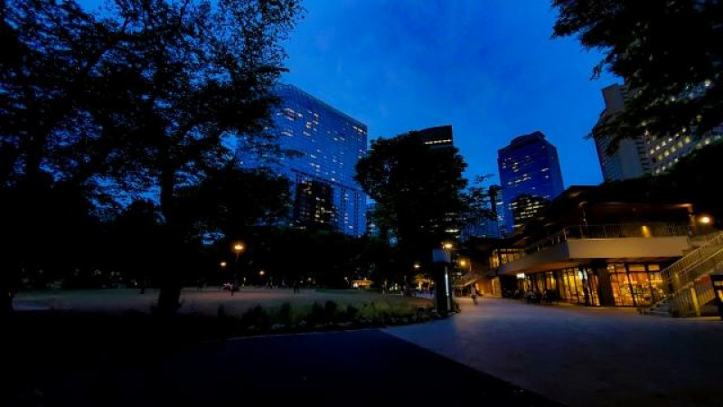 니시신주쿠에 있는 피크닉을 즐길 수 있는 녹음이 우거진 곳 "신주쿠 중앙공원 ".