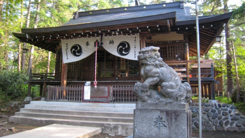 JR 아즈마선 나가노하라쿠사츠구치역에서 쿠사츠온천행 버스를 타고 종점에서 하차 후 도보 10분 거리에 있는 일본 무사를 모신 신사, "시라네 신사 ".