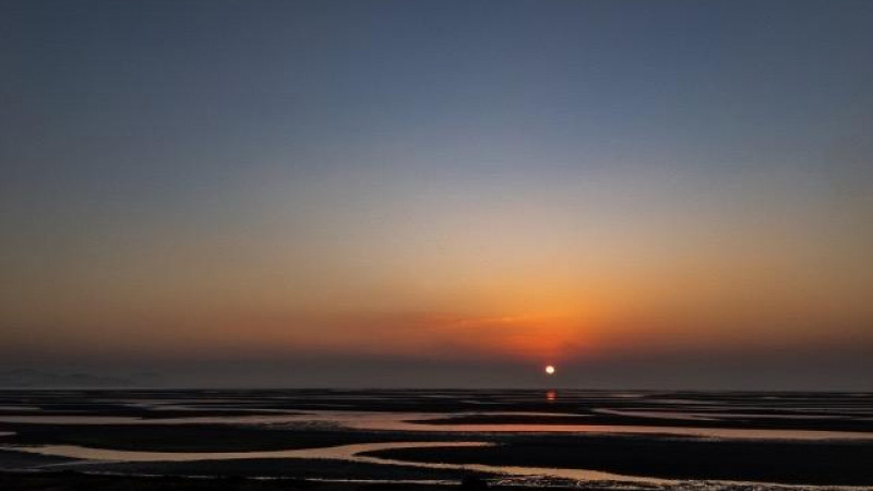 썰물 때 볼 수 있는 폭 2.0킬로미터, 깊이 700미터의 일본 유수의 광활한 모래톱은 걸어서 건너갈 수 있으며, 특히 바람이 없는 날의 조수 웅덩이에서는 주변이 거울처럼 비치는 환상적인 사진을 찍을 수 있다.