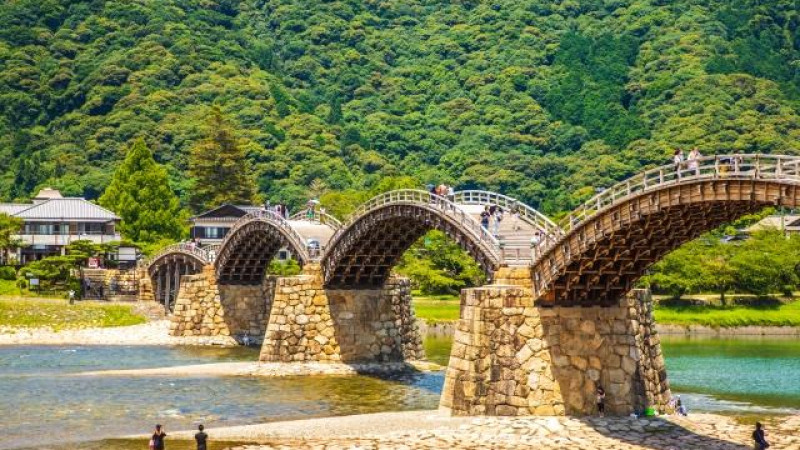청류錦川에 놓인 다섯 개의 아치가 아름다워 일본 3대 명교로 선정되기도 했다.
