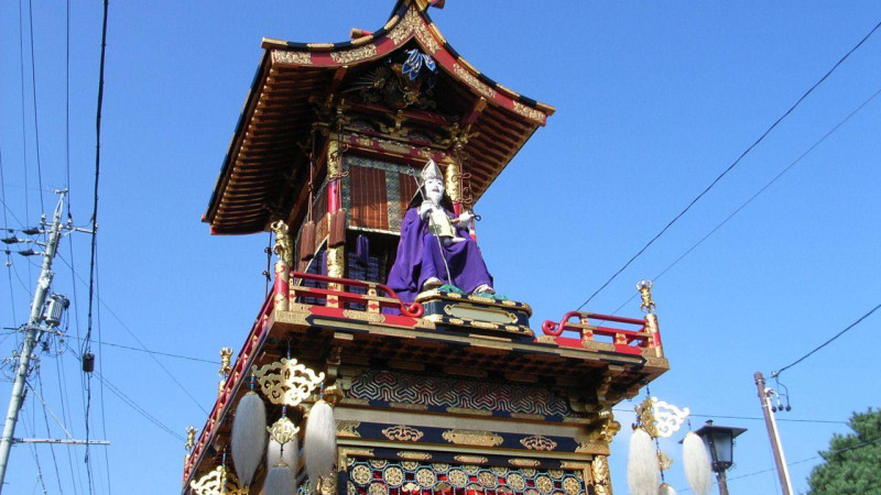 다카야마 축제는 기후현 다카야마시에서 매년 4월 14, 15일에 열리는 히에지 신사 제례 "봄의 산왕제 "와 10월 9, 10일에 열리는 사쿠라산 하치만구 제례 "가을의 하치만구 제례 "의 총칭이다. 그 기원은 16세기 후반에서 17세기까지 거슬러 올라가는 것으로 추정된다. 봄과 가을 두 차례에 걸쳐 10대 남짓한 "축제 마차 "가 다카야마 시내를 돌아다닌다. 음악과 가무, 사자춤에 맞춰 투계악(闘鶏楽)과 가미시모스가타(神輿姿) 등 전통 의상을 입은 수백 명에 달하는 축제 행렬이 행진하며 시내는 축제 분위기로 들썩거린다. 인형이 섬세하고 대담한 연기를 펼치는 "가라쿠리 봉납 "에는 장인의 기술이 계승되어 방문객들의 주목을 받고 있다.