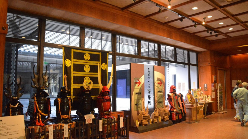오카자키 공원의 북쪽 끝에는 "미카와 무사의 야카타 이에야스관 "이 설치되어 있습니다. 관내에서는 이에야스의 탄생부터 천하통일까지, 이를 뒷받침한 미카와 무사들의 이야기를 5개의 코너로 나누어 상설 전시로 해설하고 있다.